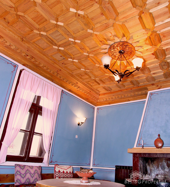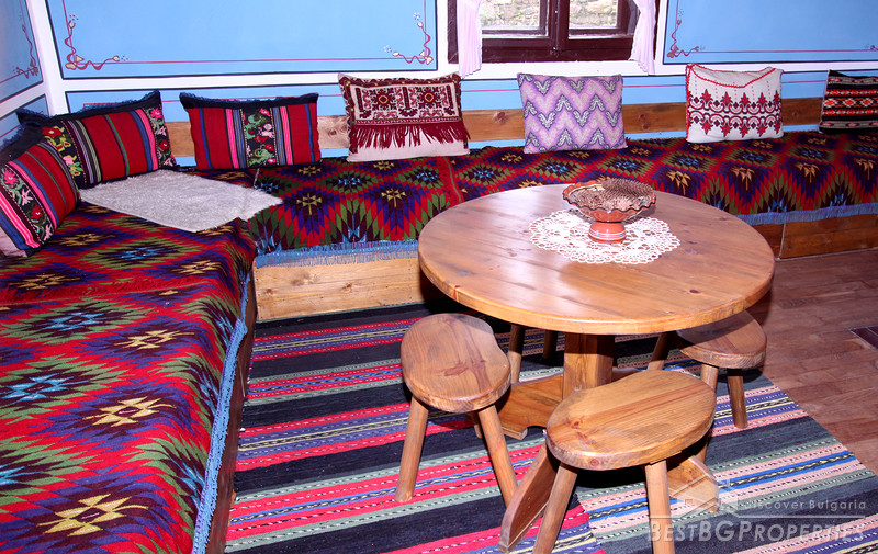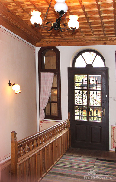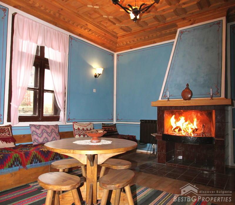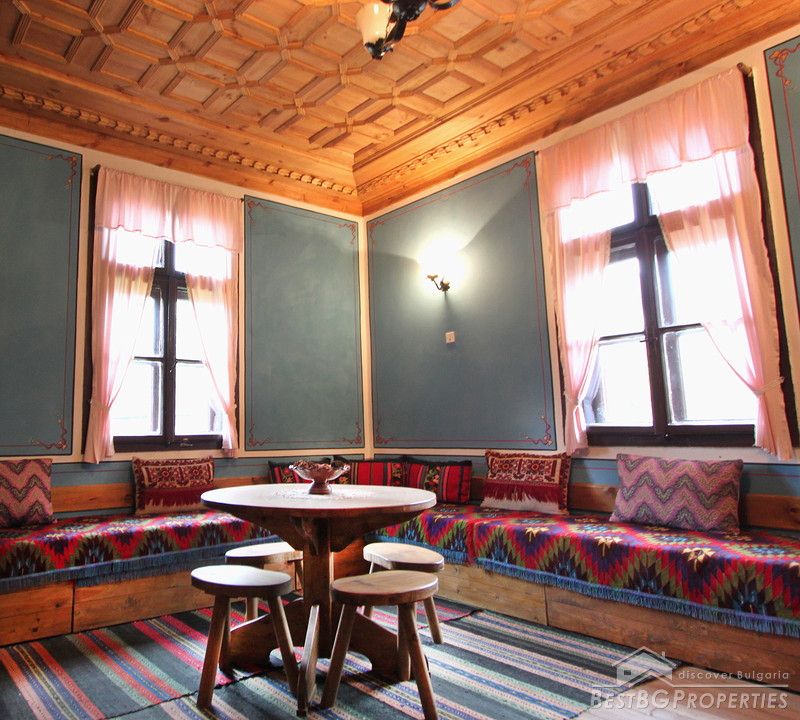 The house has a total living area of 200 sq m and a landscaped yard with a gazebo - 400 sq m. The property is surrounded with a high stone wall and has a wooden gate. All rooms in the house have unique wooden ceilings and typical Koprivshtitsa style furniture and wall painting. The house has its own heating.