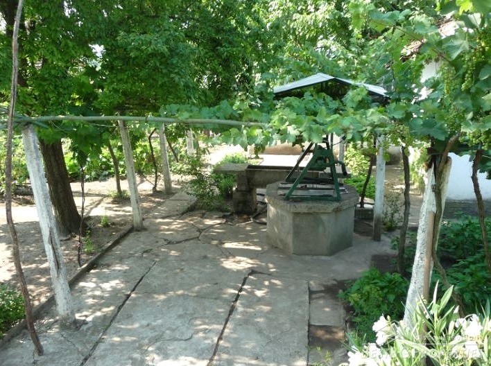 The yard is beautiful. It includes much greenery, fruit trees, vines, flowers, cemented walkways, etc. It also has a well with a pump.