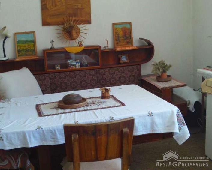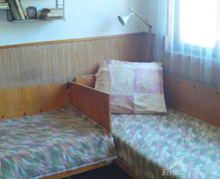 The total size of the land is about 650 square meters. The building has built area of 97 sq m. It consists of a ground floor with three rooms; residential floor with one bedroom, living room, kitchen, hallway, sanitary premise; attic floor with two rooms, kitchen and a bathroom. The ground floor has living area of 97 square meters. The first floor and the attic each have 59 sq m of living space.