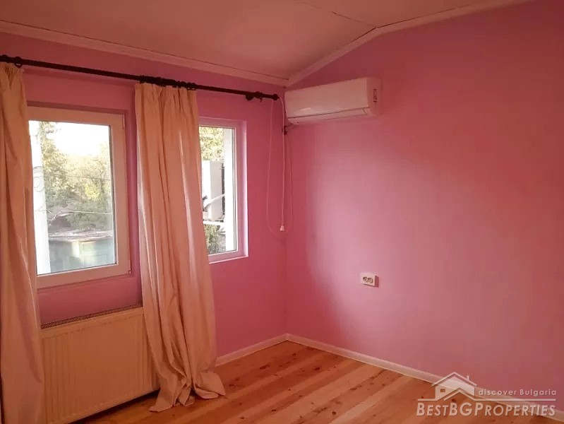 The house is fully finished and equipped with air conditioners and radiators in every room, and a boiler on solid fuel for the local heating. The property is multifunctional and could be used for living and for business. It has two premises that are suitable for stores, an office, a beauty salon, a diner, a cafe, a bar, a pizzeria, a workshop, warehouse, and other. The building has thermal isolation - 10 cm and PVC windows with triple glazing.