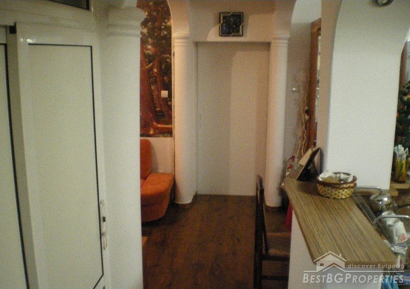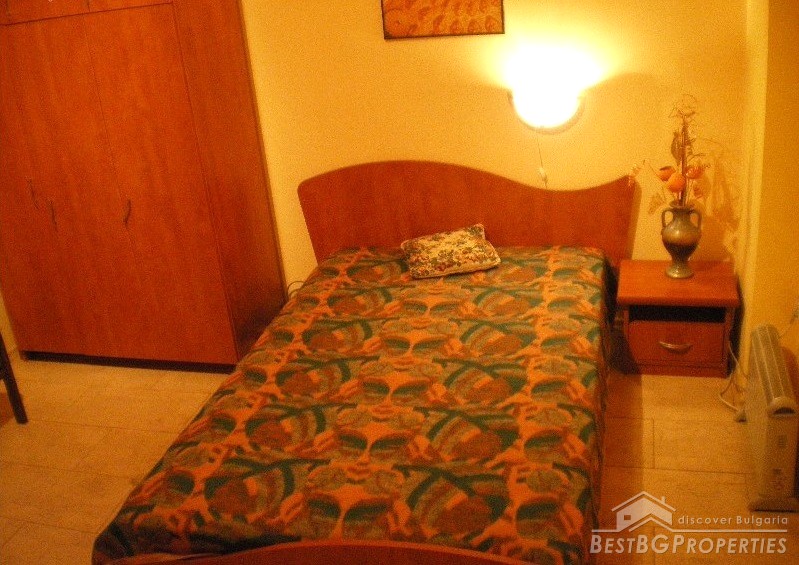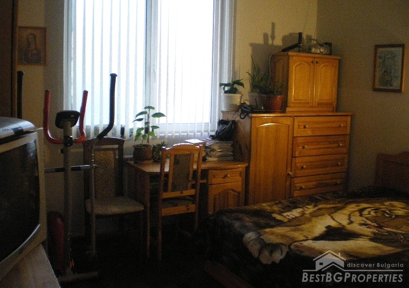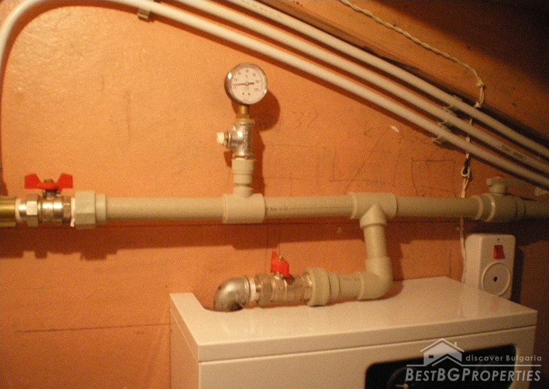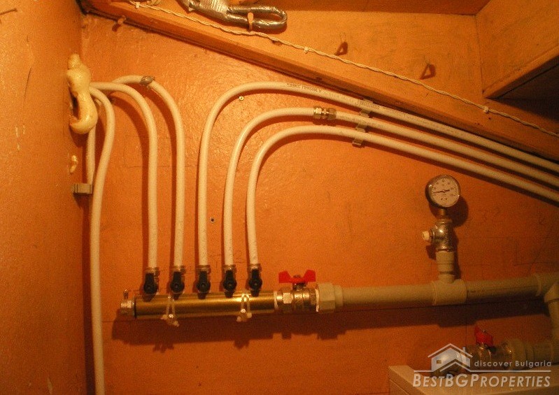 The house has total living area of 170 sq m. It is a semi-detached house (twin) with a separate entrance and consists of two floors, each with an area of 88 sq m. The first floor consists of a kitchen, living room, bedroom and a bathroom + second toilet + laundry room, basement - 8 sq m, boiler room for the central heating. There are two air conditioners. The access to the second floor is via inside staircase and the distribution is as follows: 2 bedrooms + small terrace and a shed.