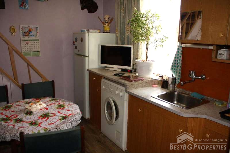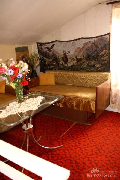 The distribution of the premises inside is as follows: On the first floor there is a terrace used as a summer kitchen, hallway, kitchen, living room and bathroom with washing machine and water heater. The attic floor consists of two furnished bedrooms and a terrace with panoramic views of Pleven.