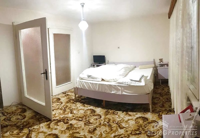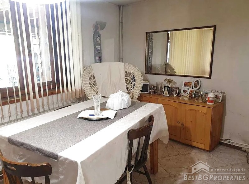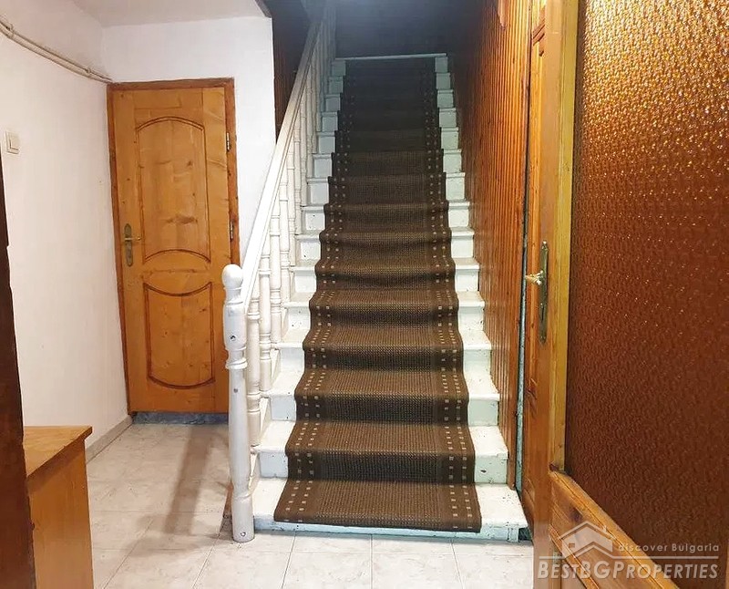 The house is two-storey, brick construction. It has a built area of 90 sq m and a small yard of 150 sq m. The distribution of the rooms inside is the following: