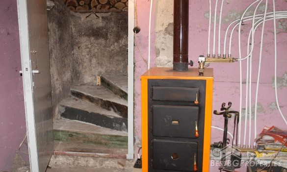 The offered house is on two levels and has a large basement. It is connected to electricity, water and central heating. On the first level there is a living room with fireplace and air conditioner, bathroom, kitchen and bedroom. Inner staircase leads to the second level with children’s room and two smaller premises. In the basement there is a boiler for the local heating. In front of the house there is a shed under which is an outside bar with summer kitchen. The house also has a winter garden with boiler and washing machine. The yard has some additional buildings - a garage, another shed, doghouse. There are lots of trees, grass and a pond. The house has a security system and Bulsatkom.