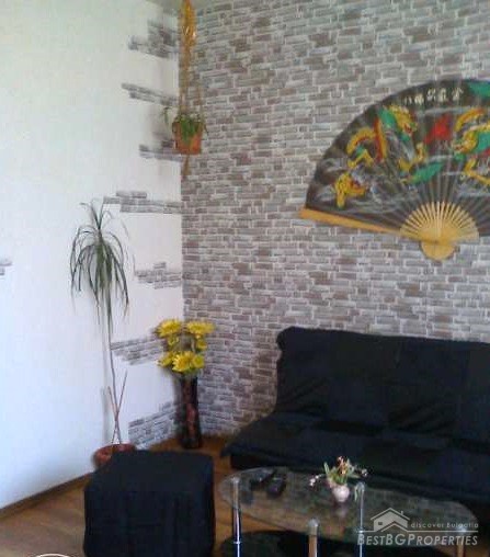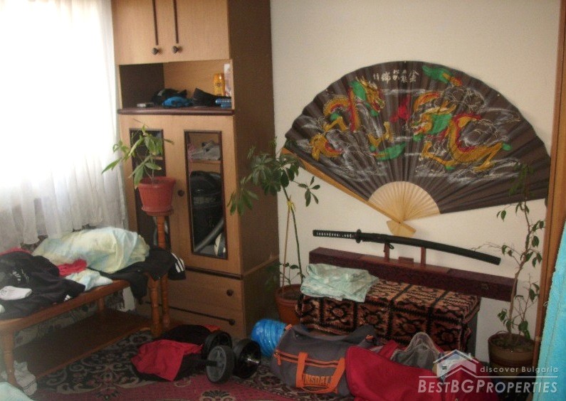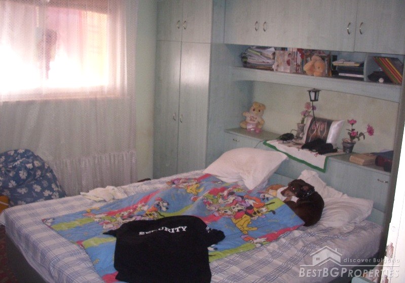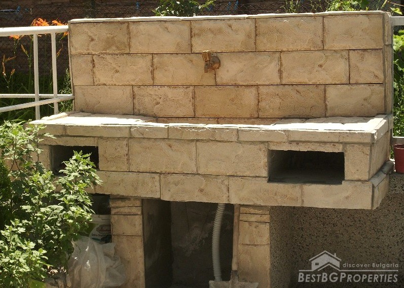The house has total living area of 130 sq m distributed between two floors. On the first floor there are two rooms – lounge with kitchen and a bathroom with WC. On the second floor there is a living room, bedroom, another kitchen, two children’s room and a bathroom with WC. There are also three balconies, one of which glazed. Under the roof there is an attic – 40 sq m. The house is equipped with two air conditioners.