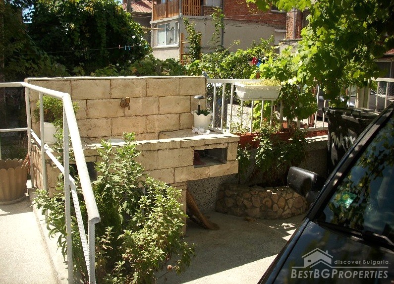 The yard is small – only 40 sq m, but it includes a solid shed, a sink and vines. Behind the house there is small yard of 20 sq m with a small building.