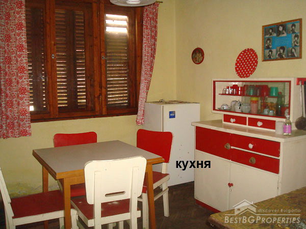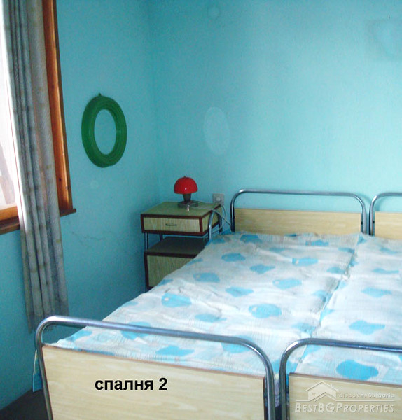 This is a small, lovely house for sale located in the town of Pravets - an area with rapidly developing tourism. The house is situated in a very communicative spot near the city center with excellent access through and asphalted road. The house comprises total living area of 100 sq m distributed between two residential floors. It consists of a spacious living room, separate kitchen, bathroom, closet, balcony and three bedrooms. Next to the house there is a solid built garage for one car. The parcel is totally flat. In front of the house there are two magnificent pine trees.