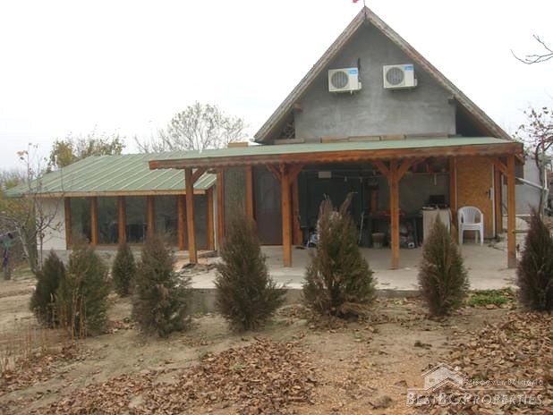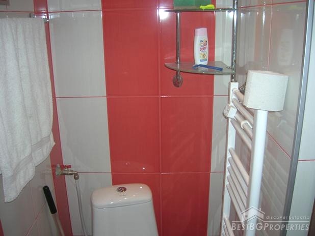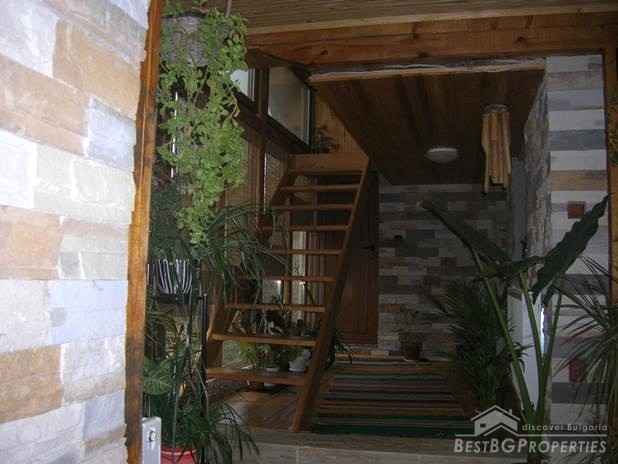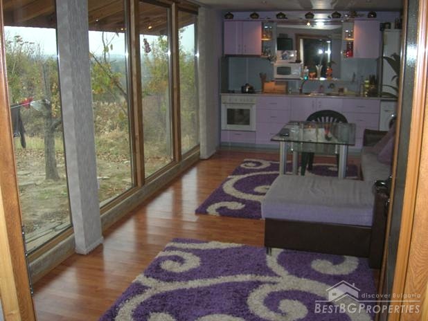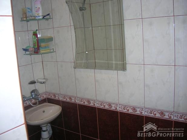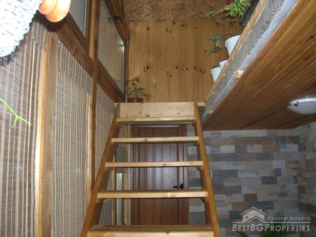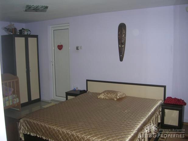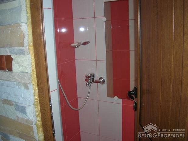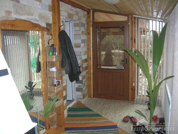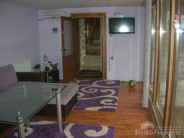 The house is built in the year 2009. It is on two floors and comprises total living area of around 100 sq m. It comes with a plot of land with size - 500 sq m. The property is situated on the outskirts of the town in a famous villa zone right behind a large restaurant. The house consists of three rooms, panoramic corridor, two bathrooms and two WCs. There is also a basement, boiler premise, local heating and storage.
