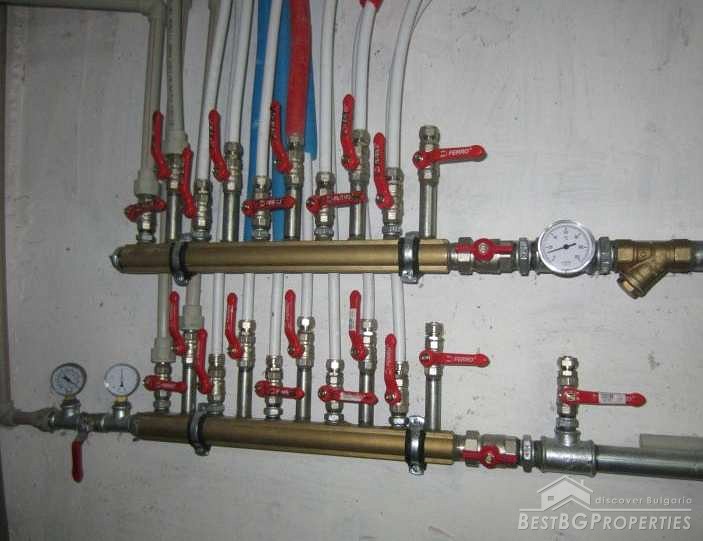 The house is insulated with 10 cm insulation. It has local automated heating with pellet boiler, radiators, 2 air conditioners. There are 3 separate parking spaces in the yard, unfinished garage, lawn with automatic irrigation, decorative pond, etc.