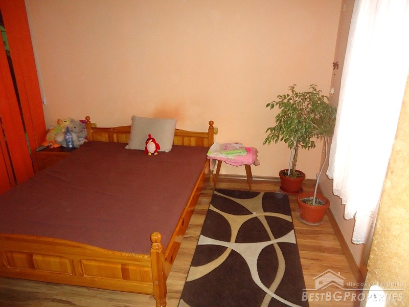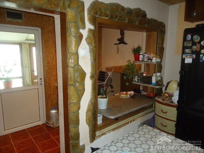 The exhibition is southeast. The living area is distributed as on the first level there is a large premise consisting of an entrance hall, a kitchen and a spacious living room with a fireplace and a water jacket. There is another spacious glazed premise with high quality double PVC window joineries. On the second level there are two bedrooms and a spacious bathroom (bathroom with toilet). There is also a basement that could become a beautiful tavern.