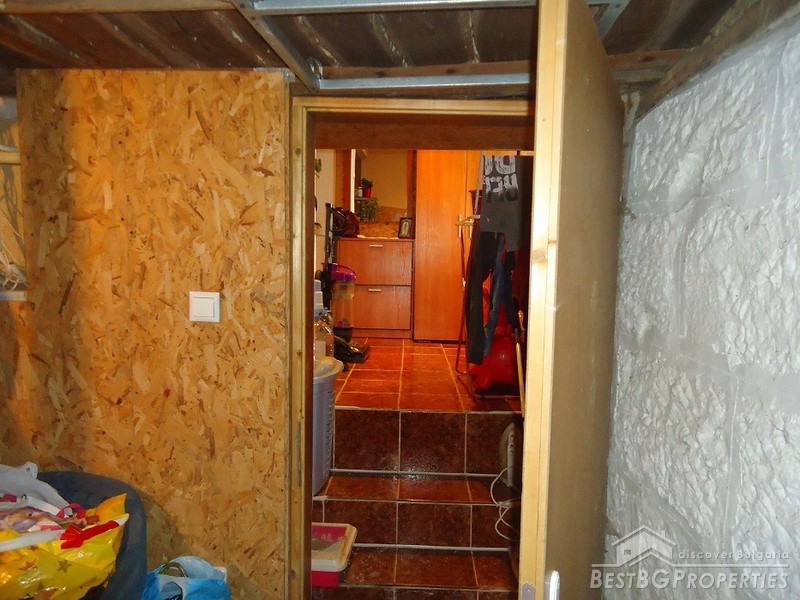 The house is facing southeast. On the first level there is a large premise consisting of an entrance hall, a kitchen and a spacious living room with a fireplace. This floor also includes another two spacious premises with double PVC glazing and room for the bathroom.