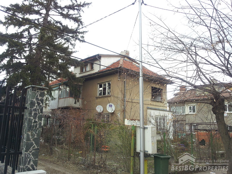 We are offering you a house for sale located in the city of Sofia in one of its most southern neighborhoods. The house comprises total living area of around 200 sq m. It is in need of renovation before you move in. The house consists of a bright, half underground floor, two residential floors and a third attic floor with slight slopes. The property is built on a plot of land with size 315 sq m and has face to an asphalted road by 19 meters.
