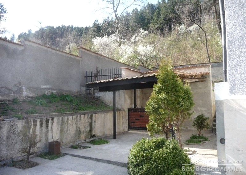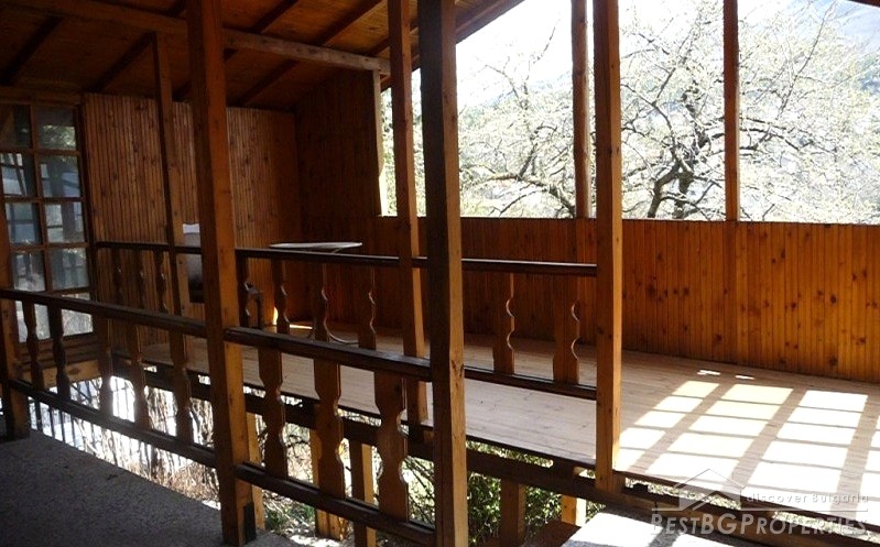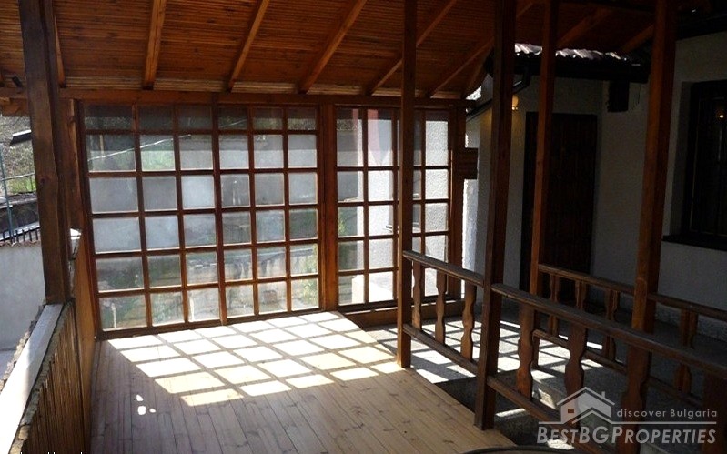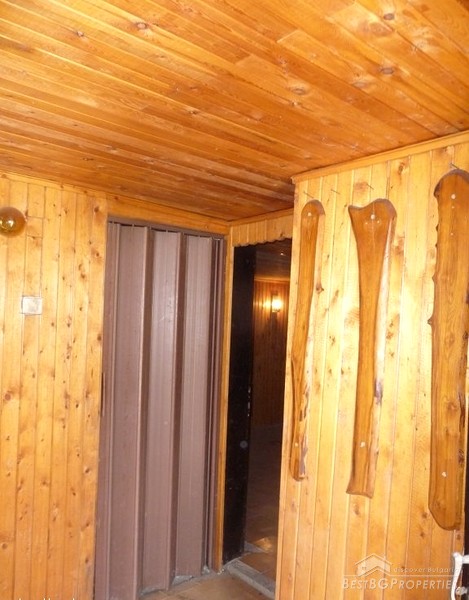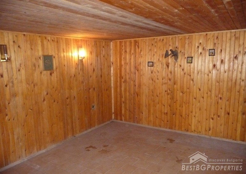 The garden is divided into five terraced parts. It is surrounded by a massive fence. There is a summer bar with shed. The whole house is built of wood and stone. The house is south facing, very sunny and quiet place.
