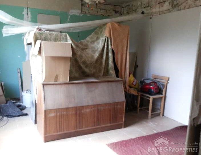 The distribution inside is the following: on the first floor there are two rooms (bedroom and children’s room), living room, kitchen and a bathroom. The living room is with replaced window joineries. The second floor consists of two large rooms.
