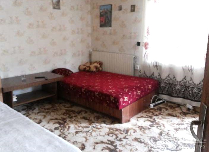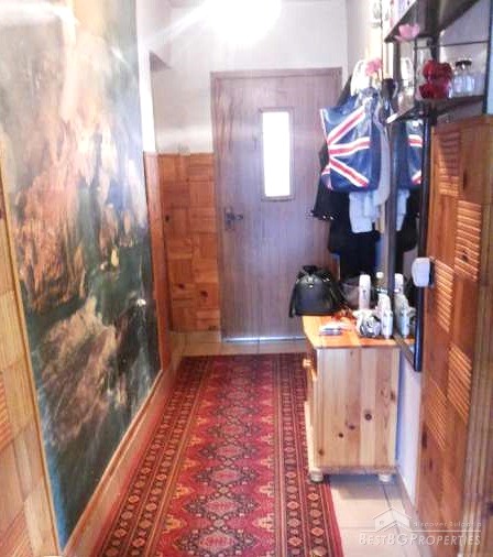 The property is located in the suburbs of the town, in a quiet area with convenient access by an asphalted road. Nearby there are bus stops and a train station. The built area of the house is 90 sq m and the size of the yard is 610 sq m. The price also includes a garage, a premise for the heating and a summer kitchen.
