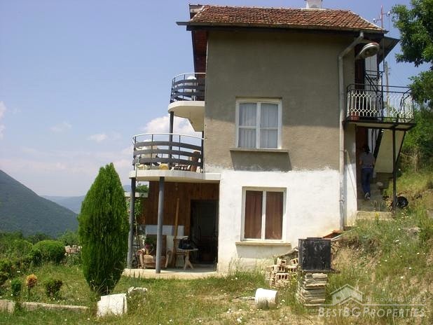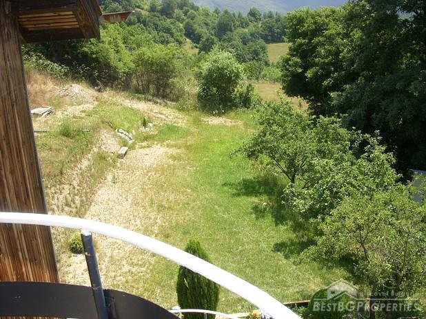 The house is on three floors and comprises total living area of 140 sq m. It is built on a parcel with size 1000 sq m. The distribution of the premises is as fallows: first floor - living room with fireplace, kitchen, and a bathroom with WC. The second and the third floors consist of two bedrooms, corridor and a balcony. The house is very well maintained with amazing view towards the surrounding green hills and forests. It has entirely southern distribution. The property has a summer garden. There have been bought aluminum window joineries and all necessary materials but it hasn't been placed yet.