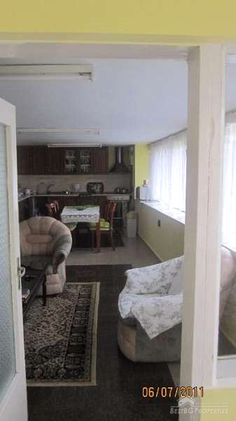 The distribution inside is as follows: On the first floor there is an entrance hall, spacious living room with dining area and kitchen, two bedrooms, bathroom and toilet. Second and third floors have the same layout (entrance hall, living room with a dining area and a kitchen, two bedrooms, large bathroom with toilet). The third floor is not yet entirely finished (Bulgarian standards of completion).