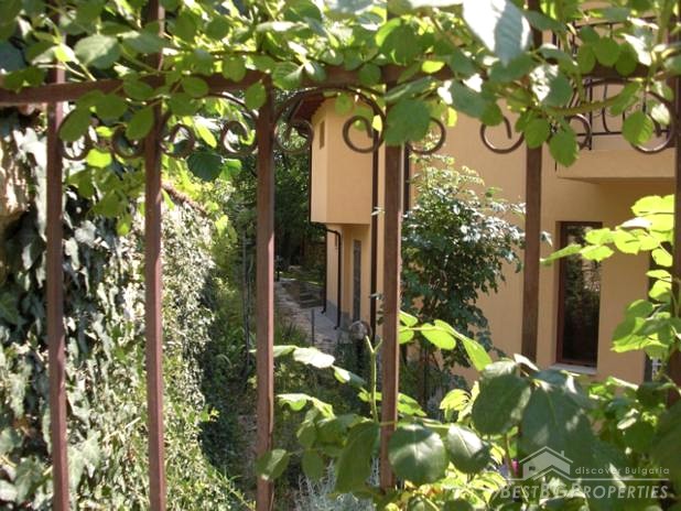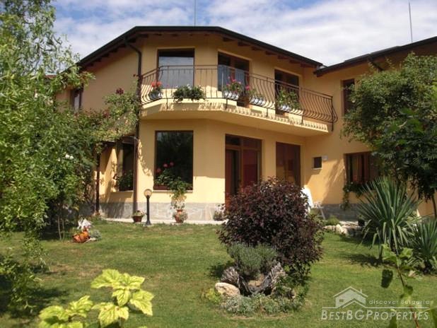 The offered house has total living area of 308 sq m and is on two floors. It is connected to all communications - telephone, local heating, electricity and water. Both parts of the house share the same garage. The construction is brick type. During the construction have been used materials of best quality according the highest requirements - hydro and thermal isolation, PVC window joineries. The west part of the house is finished according the Bulgarian standards - on plastering and putty. The east part is completely finished and furnished and has local heating, solar collectors.