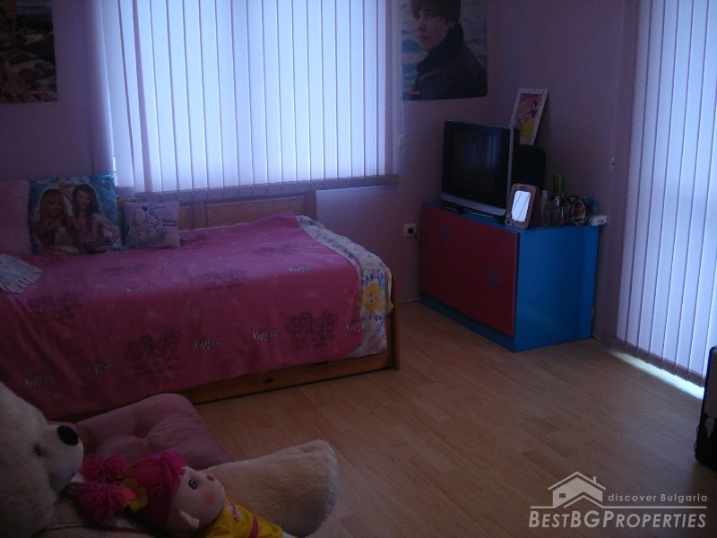 On the first floor there is a large living room with kitchen and a premise intended for a bathroom with WC. On the second floor there are 3 bedrooms, two of which have shared balcony. One of the bedrooms has its own bathroom. On the floor there is also a second bathroom - incomplete. Floorings on the second floor are laminate, the terrace is with Spanish granite. The property is offered with furniture and fitted kitchen with MDF.