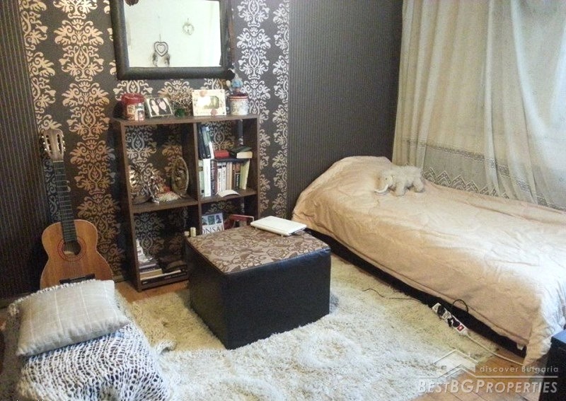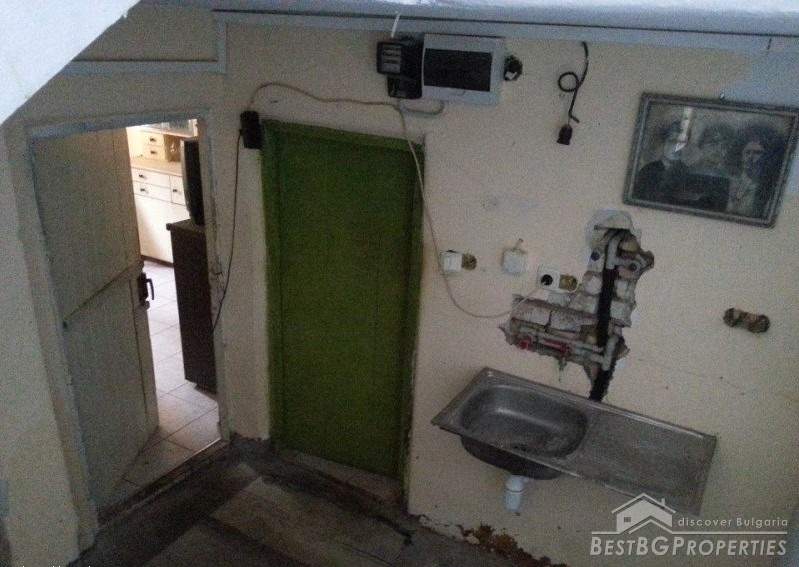 The garage was built in the 70s and fits two cars - 30 sq m. The property comes with a garden of 310 sq m. The living space of the house is 230 sq m. The ground floor consists of three bedrooms and two bathrooms. On the first floor there are two bedrooms, living room, kitchen, hallway, bathroom, and a balcony. This floor is after a renovation. It has new plumbing and electrical installations, floors of natural wood, marble and tile. There are PVC windows on the balcony. The house has a separate entrance from the second floor. On the second floor there is a staircase, lounge, hallway, kitchen, three bedrooms, bathroom and a balcony. The floors are furnished and are made as separate apartments.