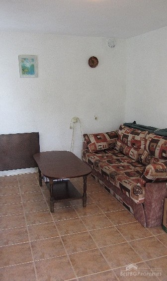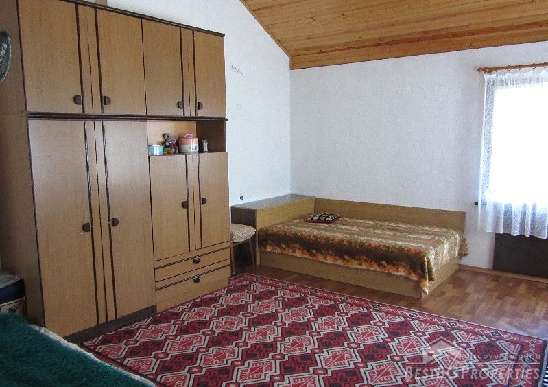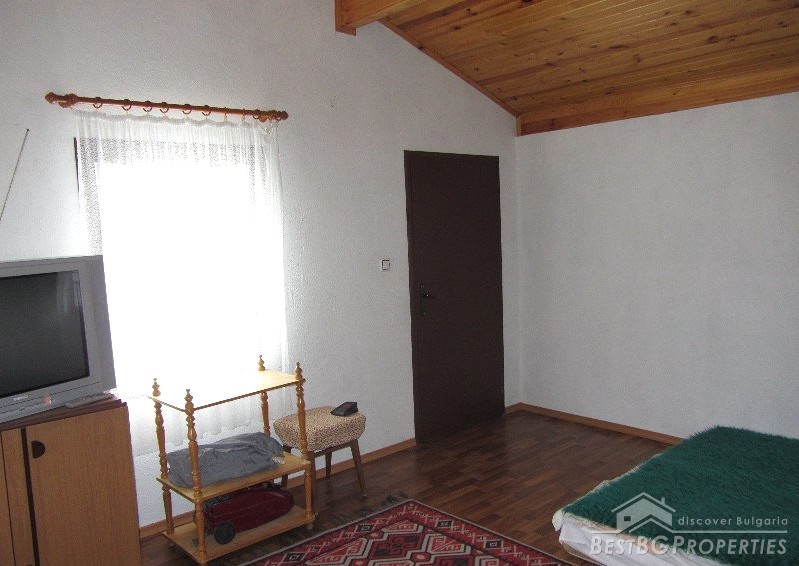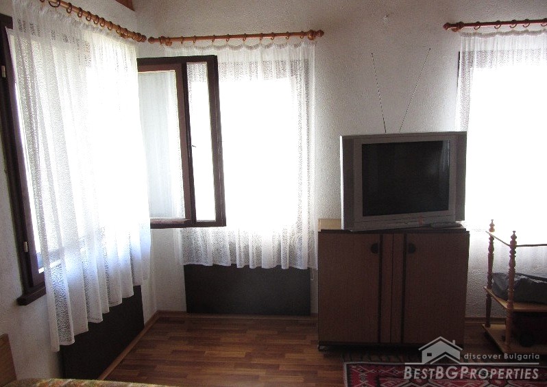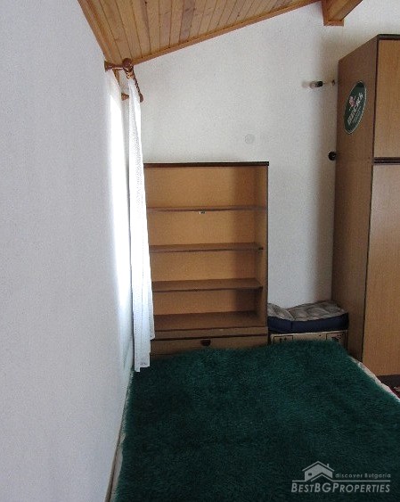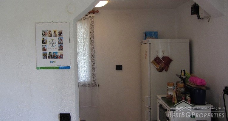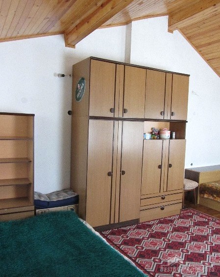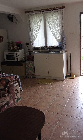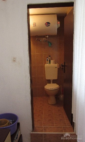 The plot size is 550 sq m and the built area is 35 sq m. The total living space is 70 sq m. The distribution of the premises is as follows: on the first floor there is a living room with separate kitchen, hallway, bathroom and toilet. The floors are finished with terracotta. On the second floor there is one large room and a wide terrace with panoramic sea views. The ceiling is completed with wagon pattern and isolation. There is also new outside isolation. In the yard there is a 70 square meters cemented landing, a septic tank. The yard is mostly flat with numerous fruit trees and other greenery.
