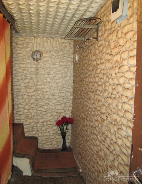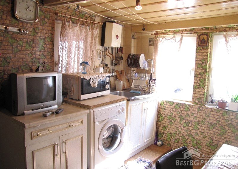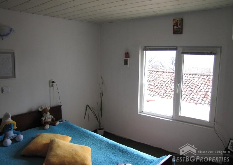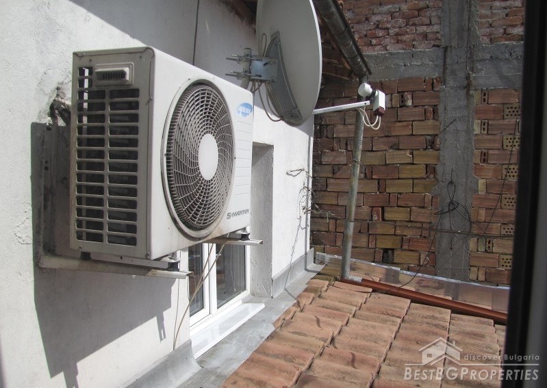 The house comprises with two residential floors and has total living area of 150 sq m. The property also has two yards one which is in front of the house with an area of 15 sq m, and the other one is behind it with size 17 square meters. The house is fully renovated and has newly replaced PVC window joineries, new bathroom and WC equipment, air conditioning. The living area is distributed between 3 bedrooms, kitchen, attic premise, bathroom and toilet and an under stairs premise.