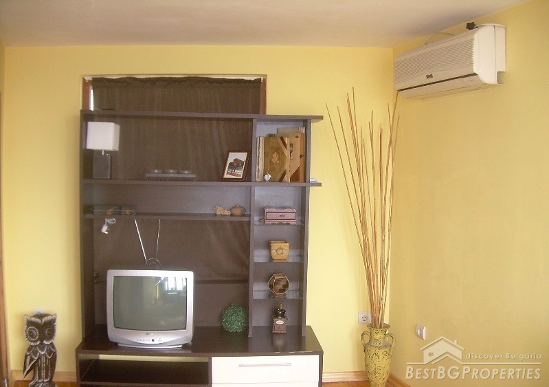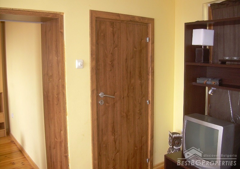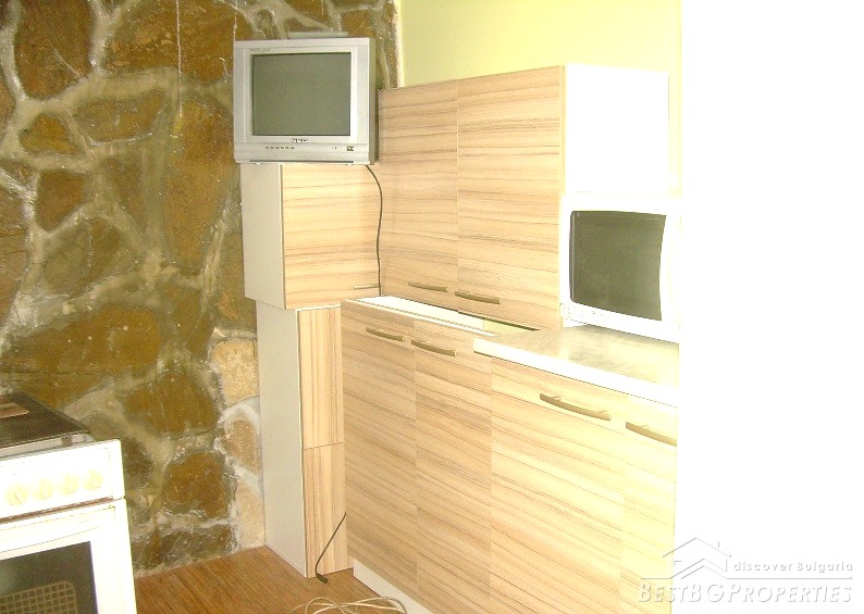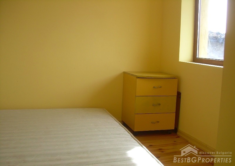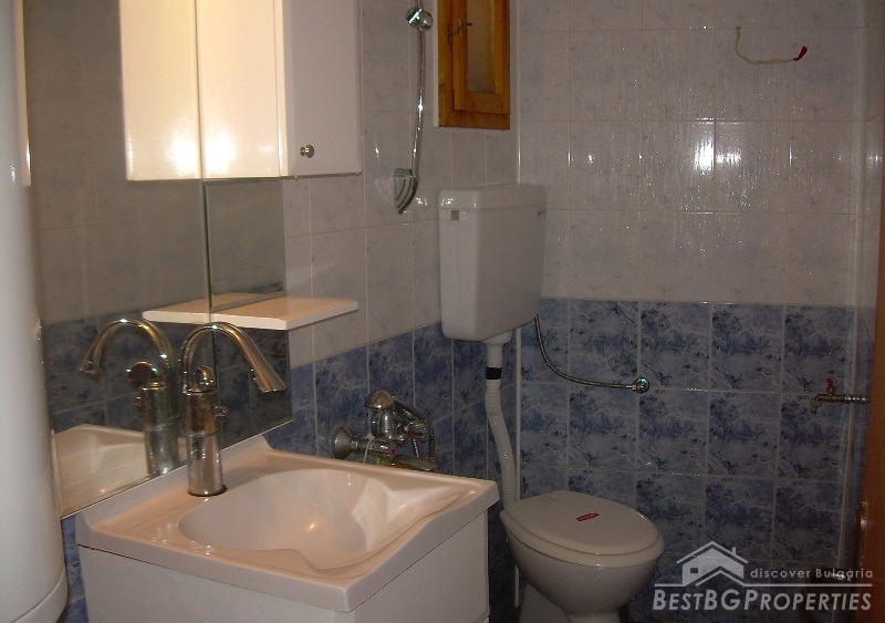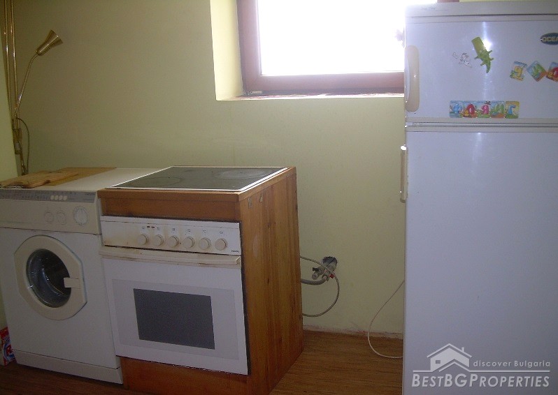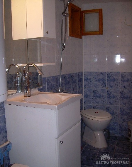 The living area is 78 square meters spread over three floors. The house consists of 2 bedrooms, living room, kitchen, bathroom and a toilet - with new boiler and sanitary. The exhibition is towards south. The property has internal and external isolation. The interior is finished with wooden and terracotta tiled floors, painted walls, PVC windows - golden oak, armored front door, air conditioning and power regulation system.