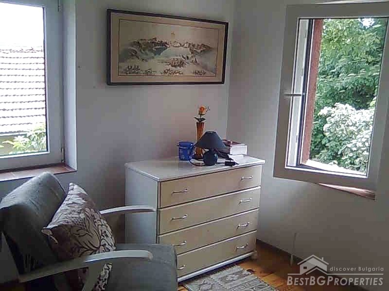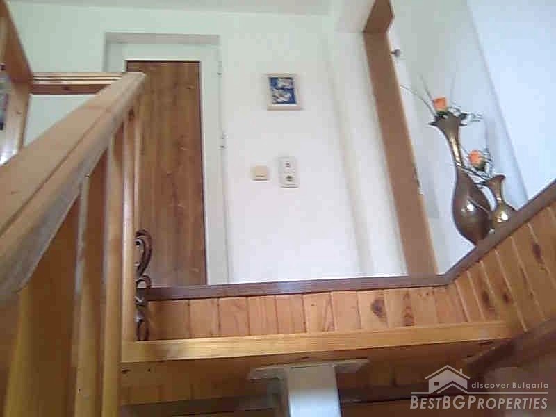 The house is two-story, size of about 120 sq m, with an adjacent building of 20 sq m. There is also a solid shed intended for a barbecue. The building has stone foundations, external thermal insulation - 7 cm, internal thermal insulation of the walls - 5 cm, new PVC windows, local heating installation, etc. The house is supplied with two types of electricity - three-phase and single-phase electricity. The water is heated with a German water heater.