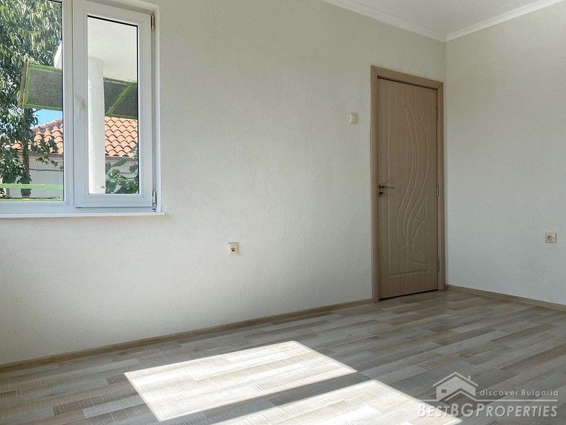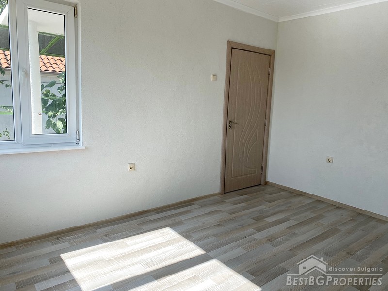 The offered house has two floors. It is after renovation, with replaced wiring and plumbing, new laminate flooring in all rooms and tiles in the bathroom. There are new switches, sockets and lighting fixtures, new windows.