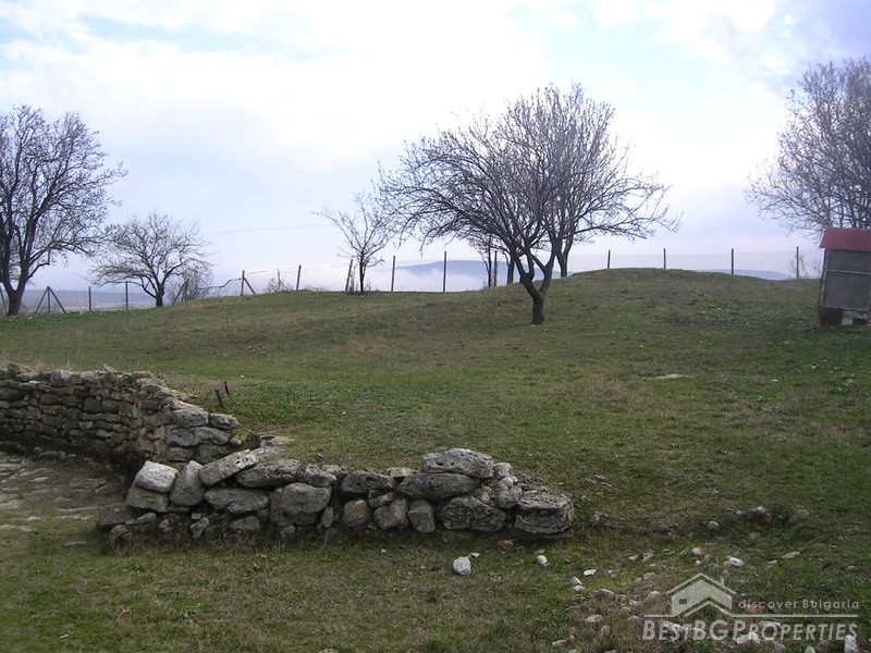 The house which is for sale is quite old and in need of renovation in order to move in. Although the foundations are solid and the house is generally in good condition. The house is made out of brick and stone. It is comprises one floor and a basement. The house consists of one room with fireplace, closet and a basement on the ground floor, and two rooms and a corridor on the first floor. It is built on a very spacious plot of land - 1050 sq m. There is water and electricity in the plot. The plot comprises some fruit trees and other greenery. The panorama is just magnificent.