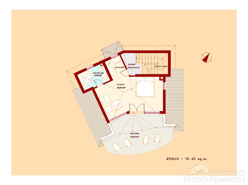 This property is located in a villa zone near the sea resort Albena. The villa zone has beautiful panoramic sea view and easy access through out the whole year. It is located 30 km away from Varna and the International airport, 3 km away from Albena and the beach, 5 km away from Balchik and at the distance of 10 km from the three new golf developments, including Gary Player's Black Sea Rama.
