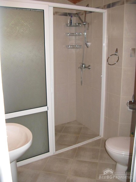 The village is very popular among foreign buyers. It is less than 4 km from the sea and about 25 minutes driving to Varna and the international airport. The villa is built in a modern style and with top quality materials. It comprises of a lounge with kitchen area with the outstanding ceiling height of 4 meters. There are 3 bedrooms and two bathrooms with WCs, and also a storage premise.