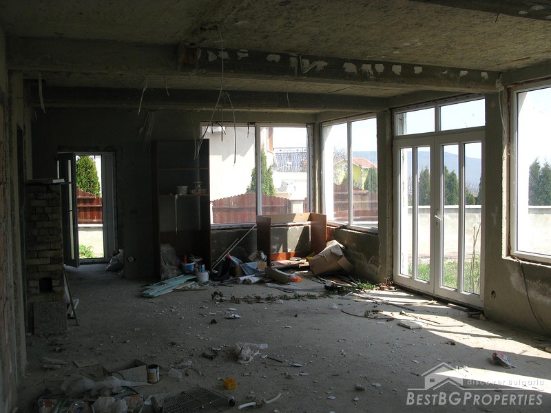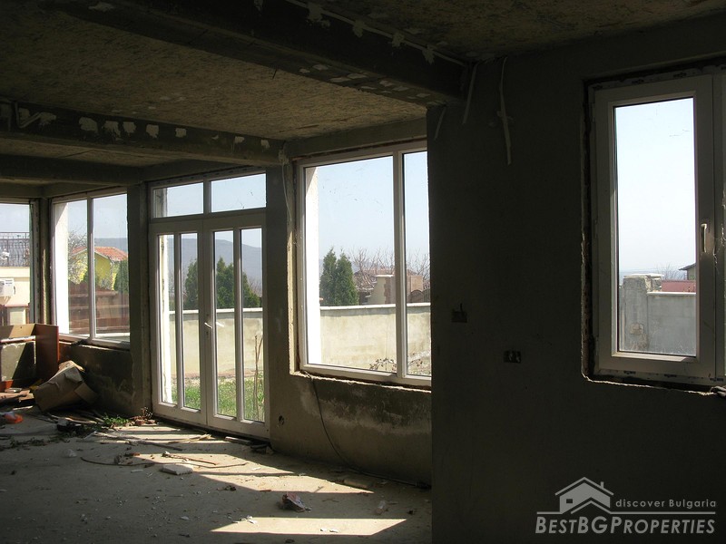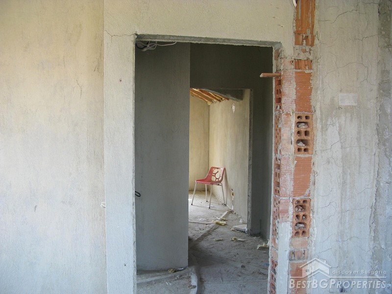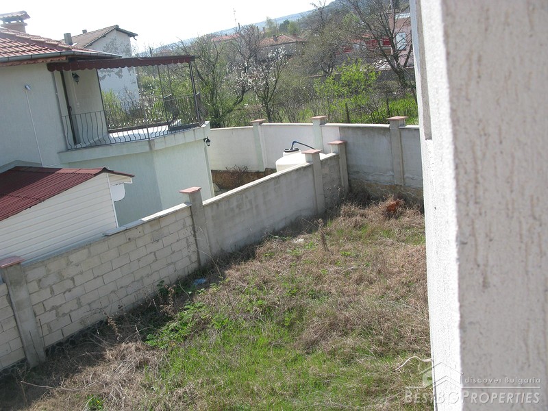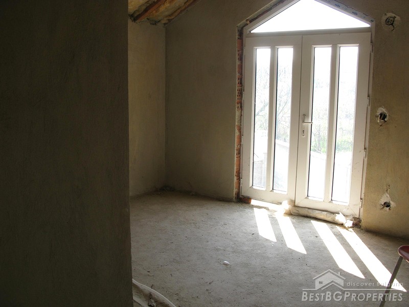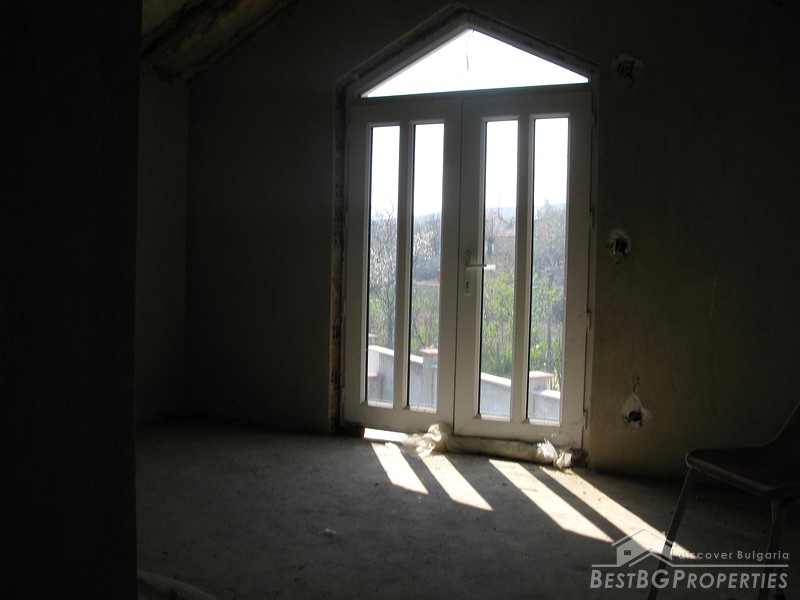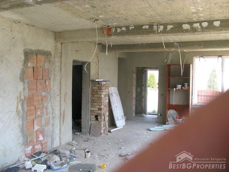 The yard is around 500 sq m and the house itself is 140 sq m in size. It is finished on the outside as you can see from the photos but the inside is not completed. It will need around 20 000 euro to finish the entire. At the moment is has act 14.