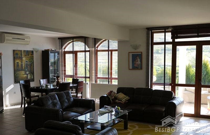 The house is fully furnished with new furniture and appliances. There are two air conditioners, 50 inch TV, large fridge, sound system Warfedale, 2 leather sofas + 1 armchair, a big table + 6 chairs, cupboards and cabinets for clothes and appliances, fully equipped kitchen, dishwasher, washing machine, tumble dryer.