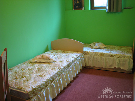 At the moment the property is functioning as a guest house. It comprises total living area of 200 sq m and has a capacity of 17 beds distributed in two double bedrooms, two triple rooms with double bed and a bed - sofa, one triple room with single beds and one double room with twin beds. There are two sanitary premises - one for each floor. The house also has a place for dining - a tavern. In the yard there is a barbecue. The property is suitable for a family housing and for business development.