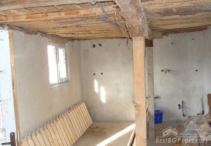 The whole property occupies a plot of land with area 1100 sq m. On the plot there are built a two-storied residential building with built area of 33 sq m and consisting of two rooms anda basement. Adjacent to it there is a summer kitchen with area 7 sq m. In the yard there is also an agricultural outbuilding with area 13 sq m and another single storied building with basement and area 48 sq m.