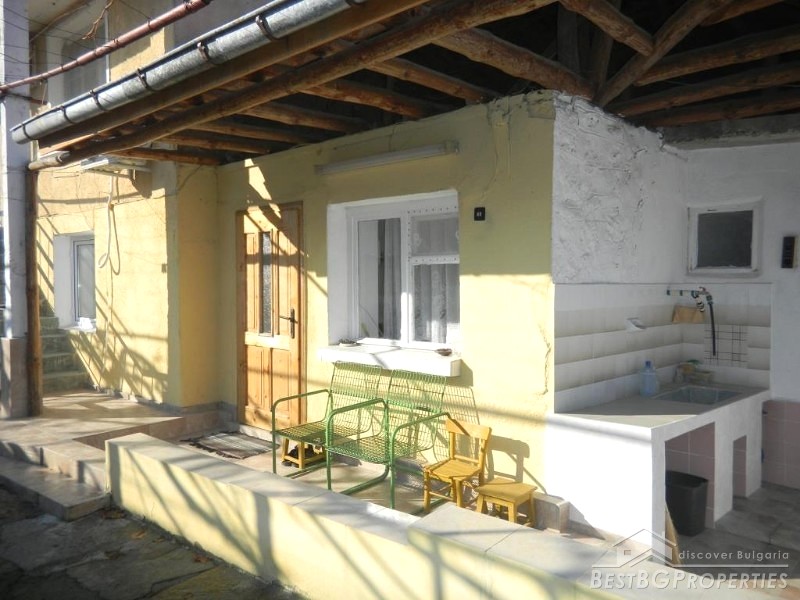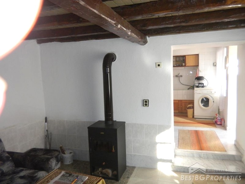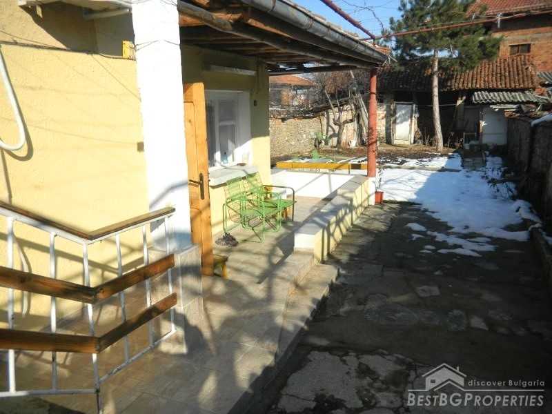 The property has electricity, water inside and outside, replaced electrical and plumbing installations, sewer. The house is heated via electricity and wood. There is ceiling insulation. The property is sold furnished. The garden is with size 250 sq m, planted with pine and fruit trees. There is an additional outbuilding and a parking.