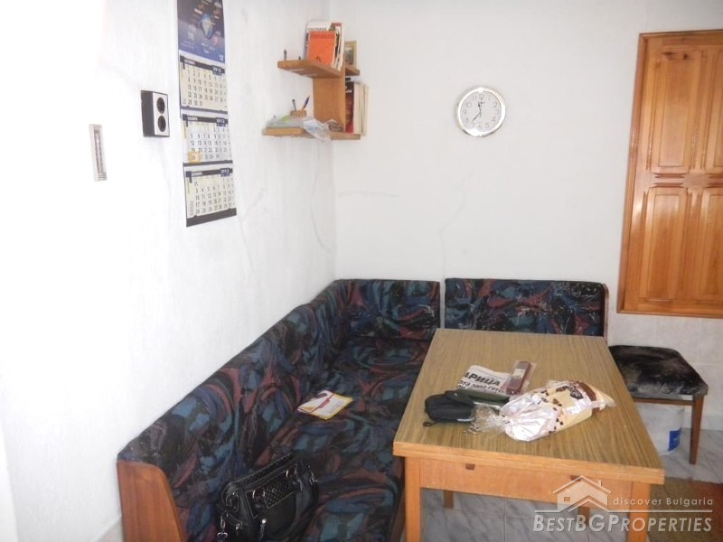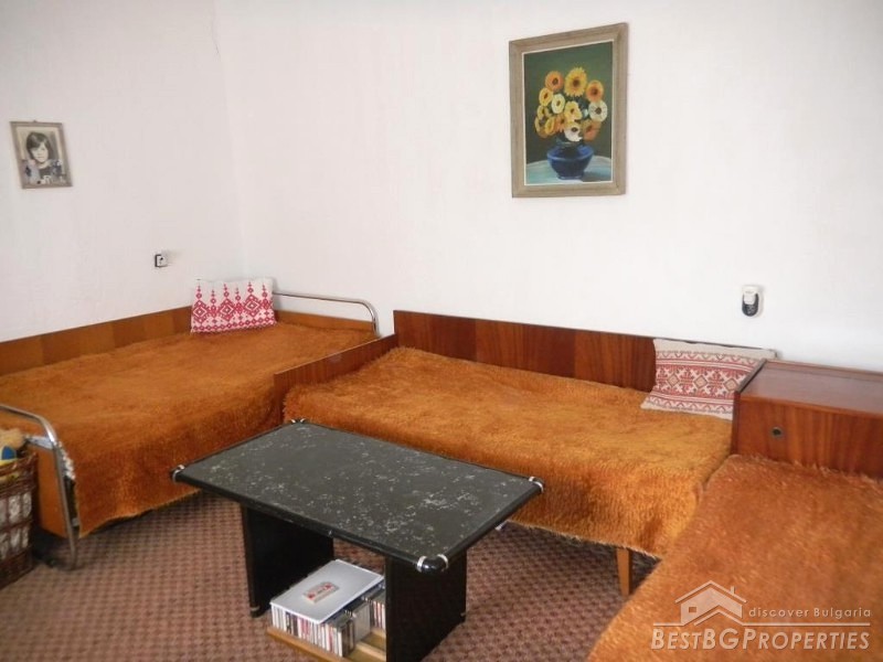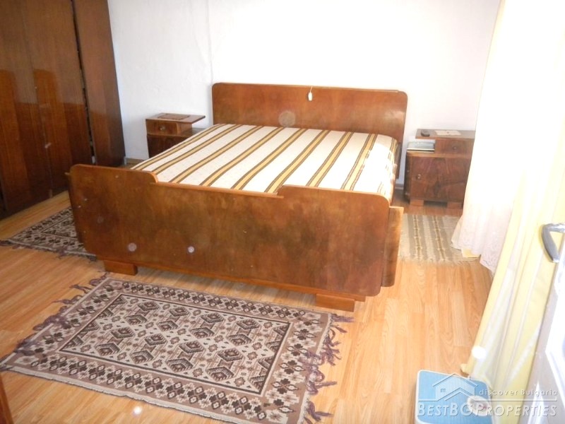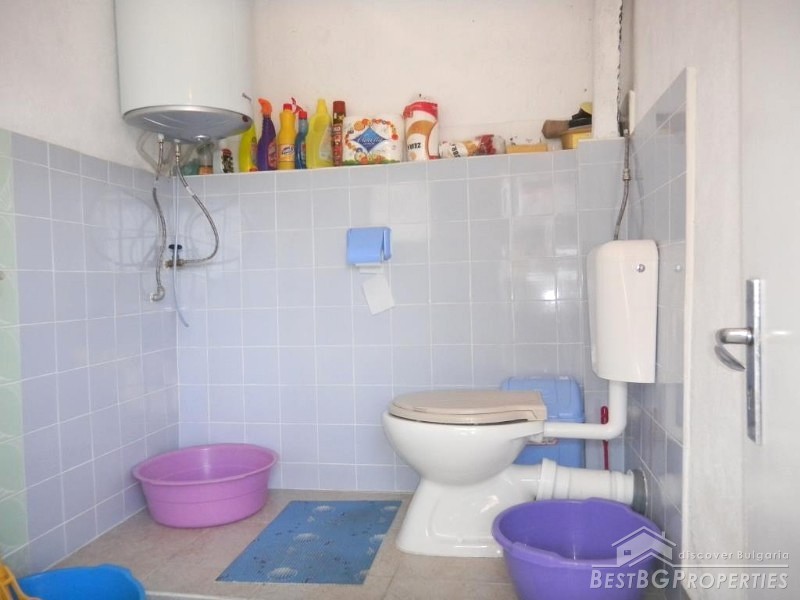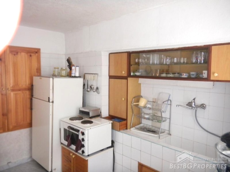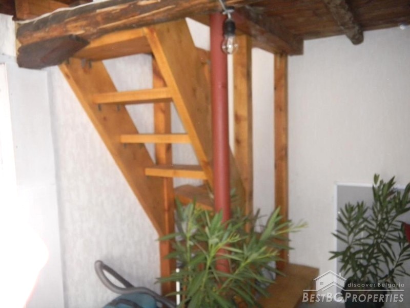 The house has 2 floors with an area of 123 square meters. The living area is distributed between: First floor - kitchen, living room, hallway and a closet. The floors are finished with granite and terracotta, stone walls, the windows are PVC and wood. There is also a bathroom and WC. The second floor is reached by an outside staircase. Second floor consists of a hallway, two bedrooms, bathroom and toilet. The floors are wooden and laminate, brick walls and windows - wooden.