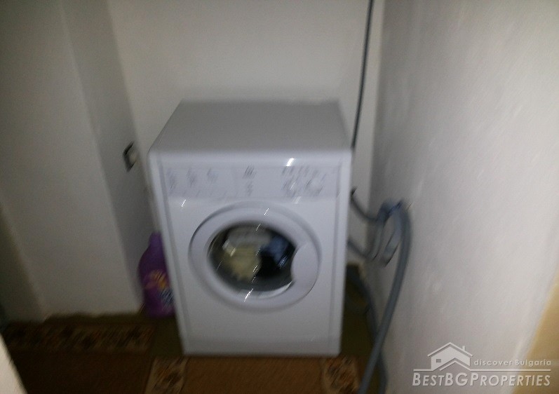 The distribution of the premises in the house itself is as follows: First floor – large hall with kitchen, toilet, sink, space for the washing machine, small room with a sofa and a table and a room with two beds. The second floor comprises of a porch-hall, bathroom with toilet and sink, a room with a sofa and table and a large room with two corner beds and a wardrobe.