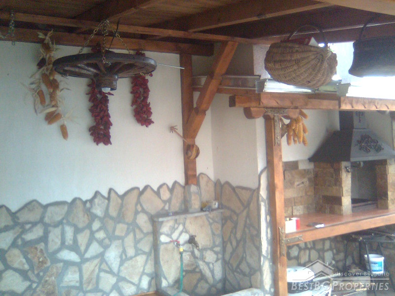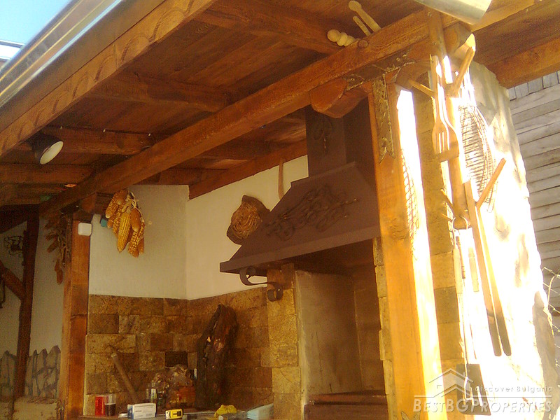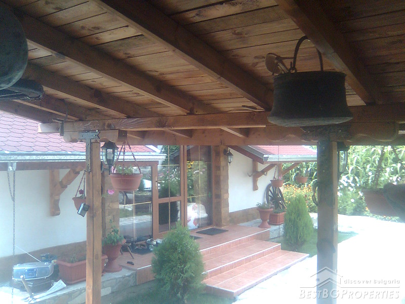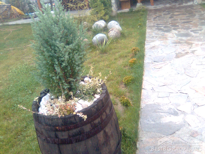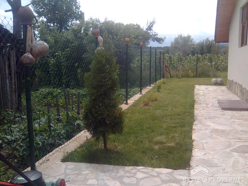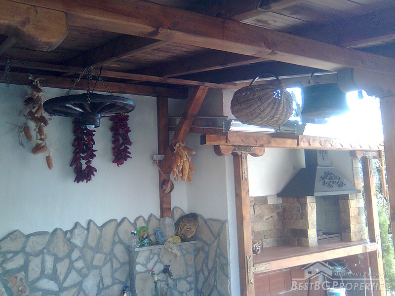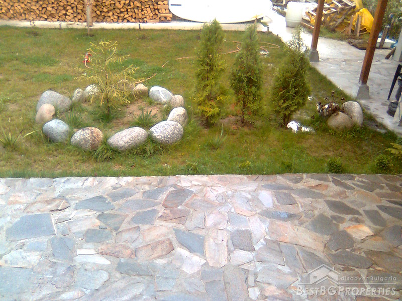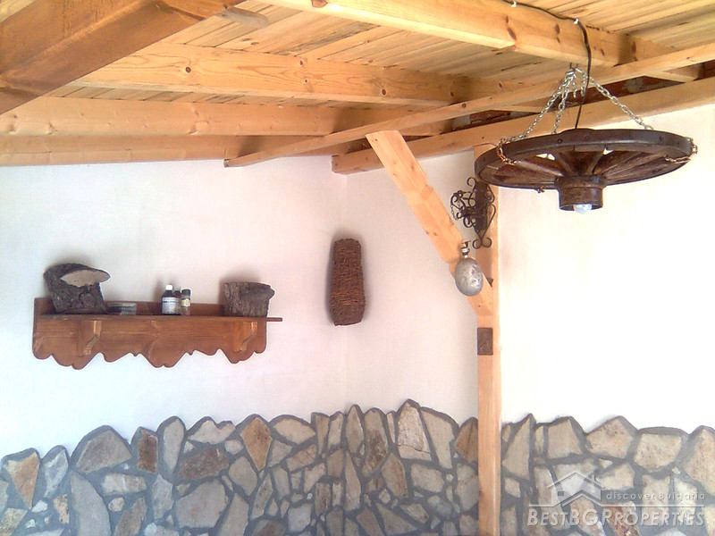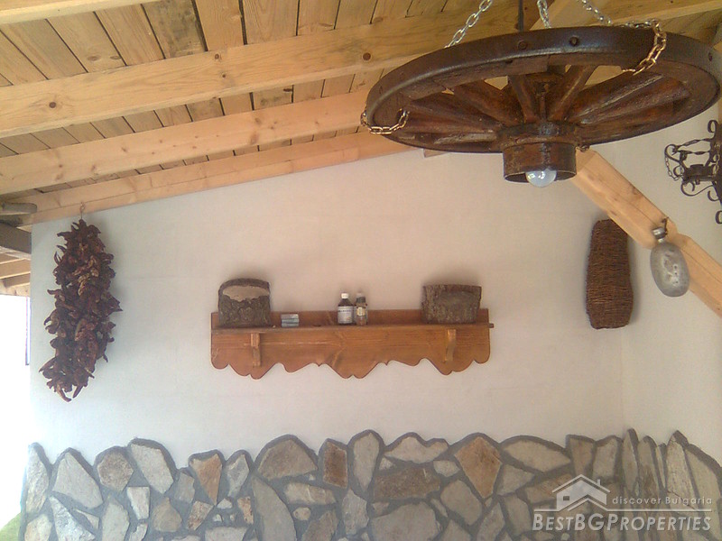 The property comprises a wonderful newly built house and a yard. The house is completely finished with best quality materials, according to the highest standards of construction. It is made entirely of brick and wood in the traditional Bulgarian style. The floorings are terracotta and laminate, faience and terracotta in the bathrooms and WC. The walls are painted with white latex. The whole house is beautifully decorated from the outside and the inside. Wooden and stone ornaments are everywhere. There are PVC window frames, isolation, MDF doors, also sewer water and electricity. The house is finished in year 2009.