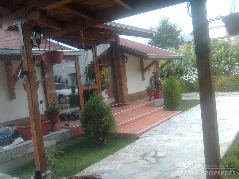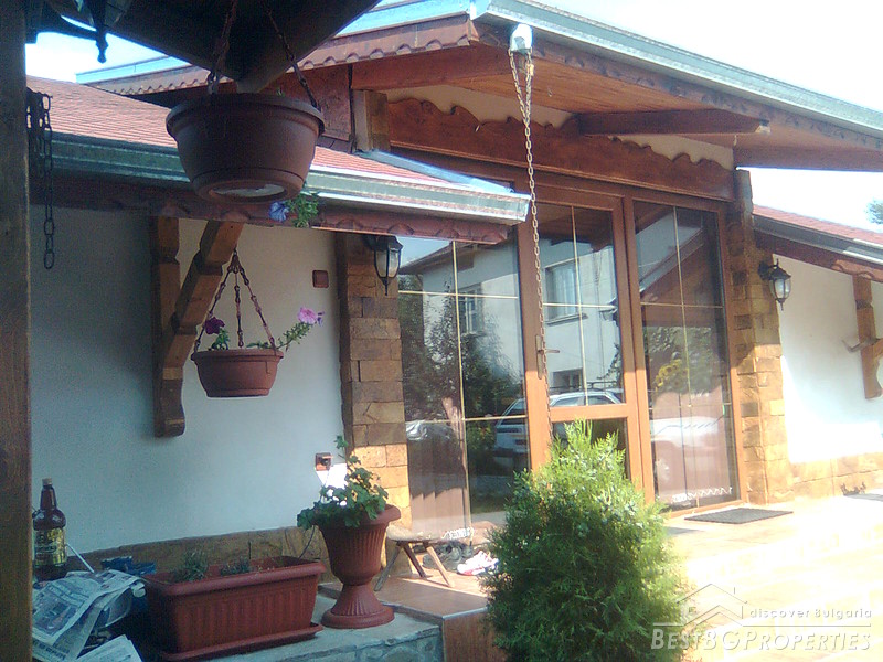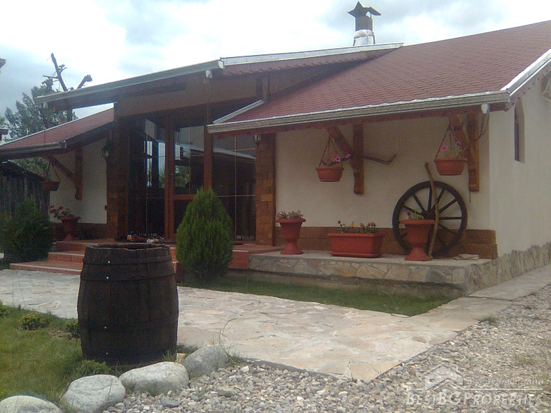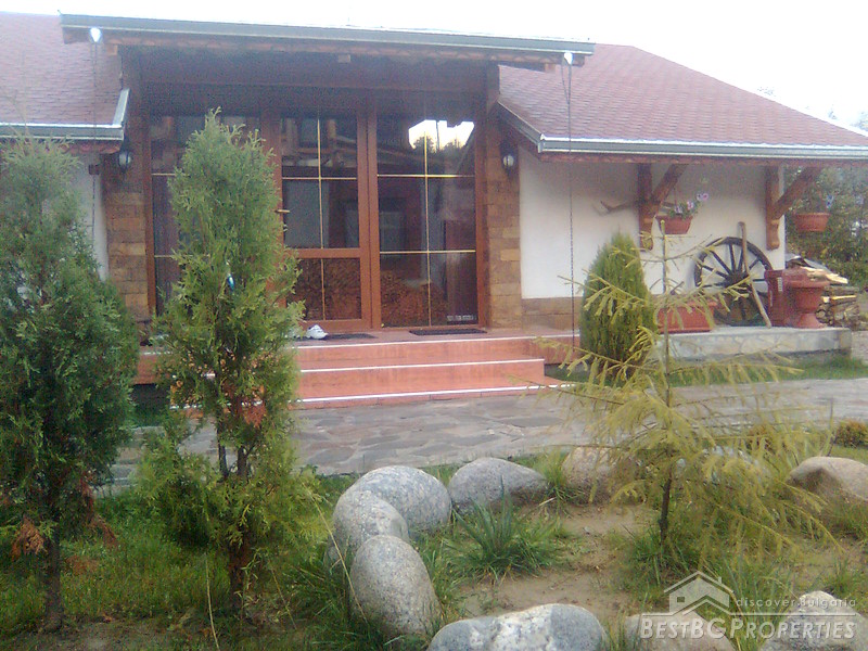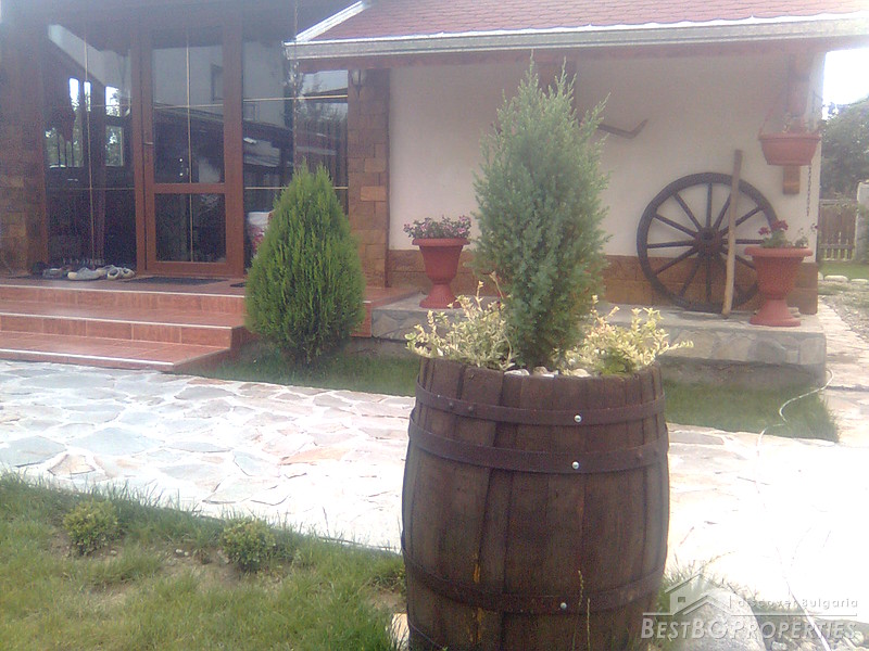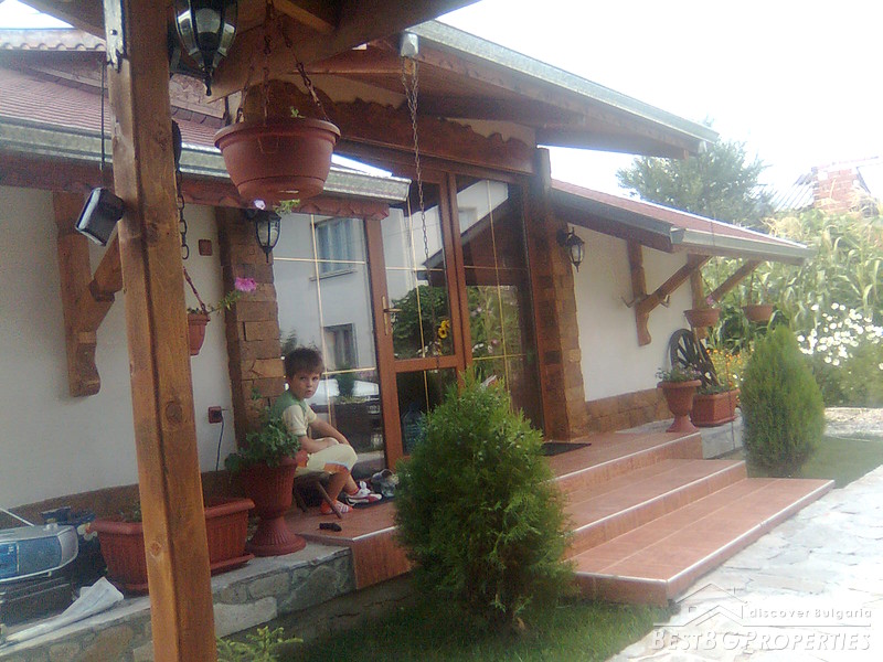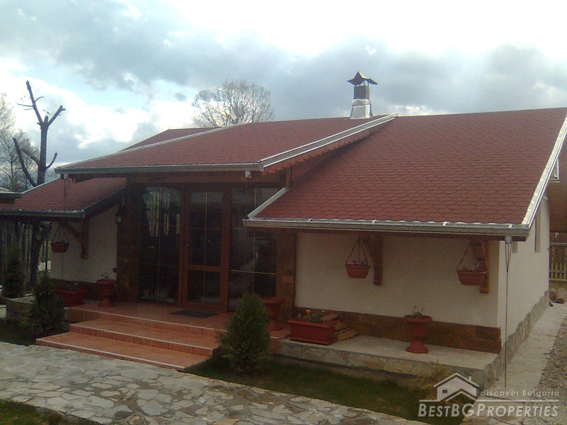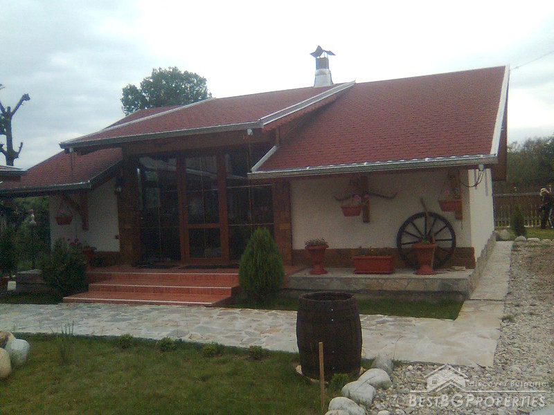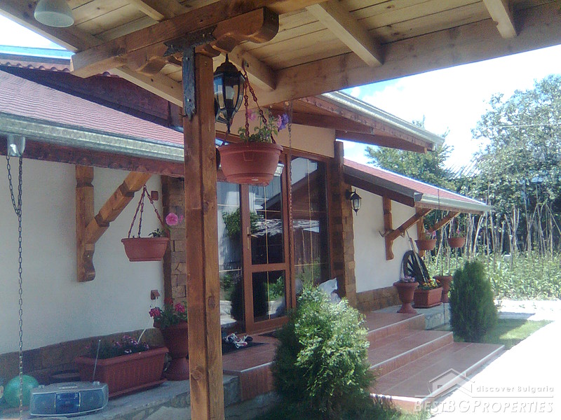 The property comprises a wonderful newly built house and a yard. The house is completely finished with best quality materials, according to the highest standards of construction. It is made entirely of brick and wood in the traditional Bulgarian style. The floorings are terracotta and laminate, faience and terracotta in the bathrooms and WC. The walls are painted with white latex. The whole house is beautifully decorated from the outside and the inside. Wooden and stone ornaments are everywhere. There are PVC window frames, isolation, MDF doors, also sewer water and electricity. The house is finished in year 2009.