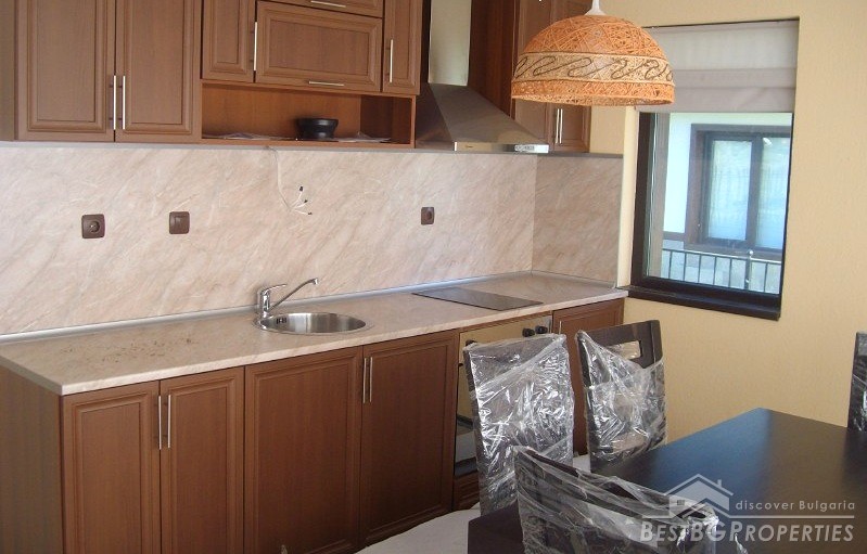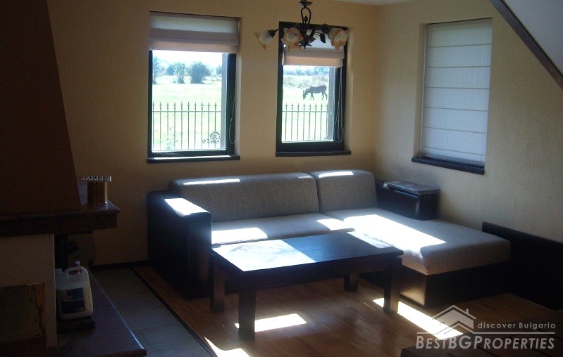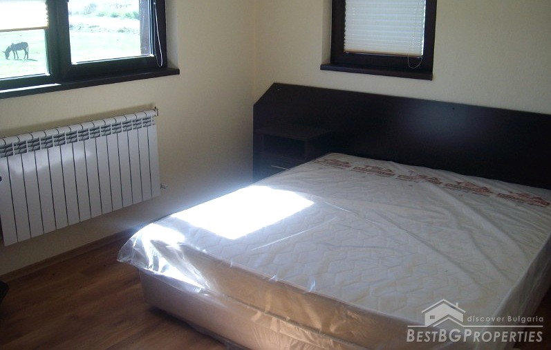 The houses are designed with external insulation, lined with beautiful granite stone, and inside- quality fine plaster and paint. The outer fences are made of wrought iron, balconies and walls are made of natural wood. The garden is designed with beautiful walks and planted with grass. Each house is fully furnished and equipped with kitchen with appliances, dining table with corner sofas, bedrooms with wardrobes, Venetian blinds, carpets according the interior design, fully equipped bathroom. Quality 5- chamber PVC joinery, local heating with fireplace and radiators in every room.