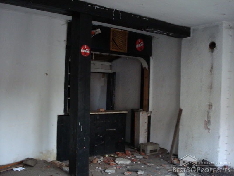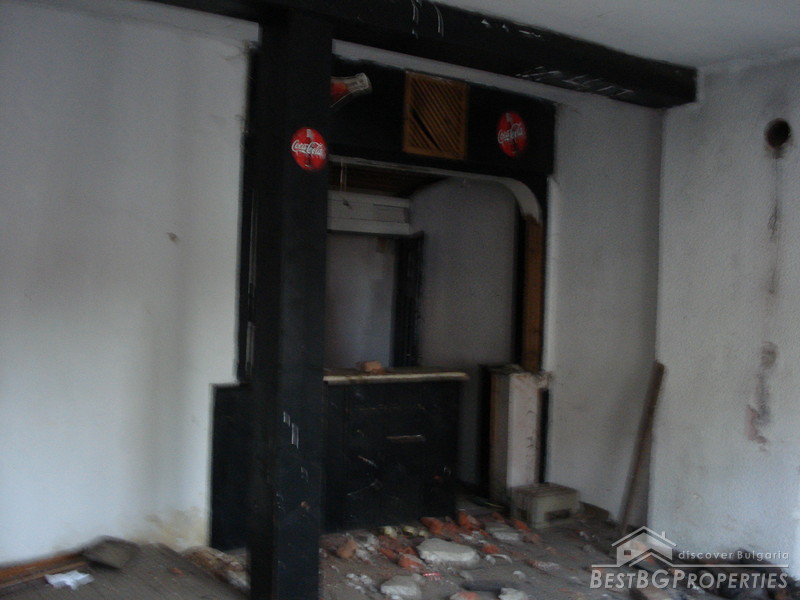 The house which is for sale is very large. It comprises two residential floors connected with inner staircase. The house is generally in good condition. The first floor has been a tavern in the past. The ceilings are very high. The house also comprises a large balcony on the second floor and a garage. It is built on a very spacious plot of land - 1300 sq m in size. There is water and electricity provided. The house is in need of renovation.
