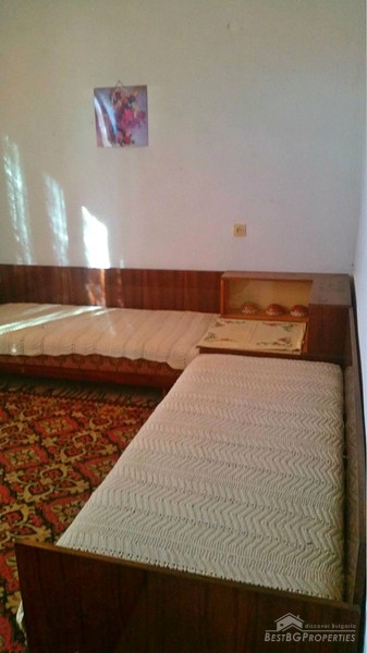 The house was built in the seventies and needs repair in order to move in. It hasn't been inhabited for several years but it has very solid construction and is definitely not to be turned down. It is built on a plot of land with total size of 700 square meters and the house itself comprise total living area of 130 sq m distributed between two residential floors. The living area does not include the garage and the terrace above it. The house consists of a kitchen, living room, one bedroom, bathroom, WC and two storage premises on the first floor. The second floor comprises another kitchen, living room with dining area and three more bedrooms. The house is very spacious with amazing views over the mountains. After some renovation it would become perfect for whole year around living. In the yard there is a barn which can be also renovated or turned down. The property is connected to all communications - water and electricity, and there is also a sewer line.