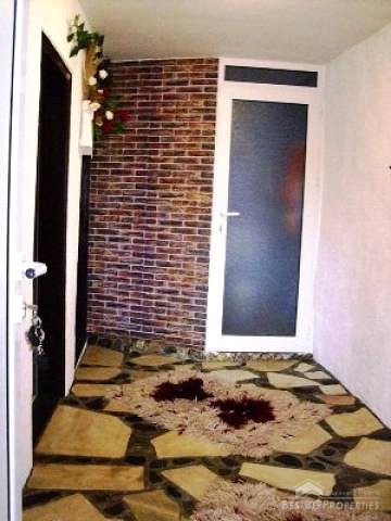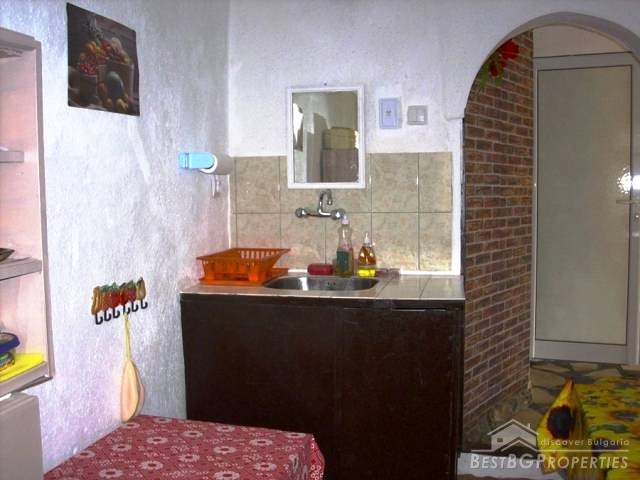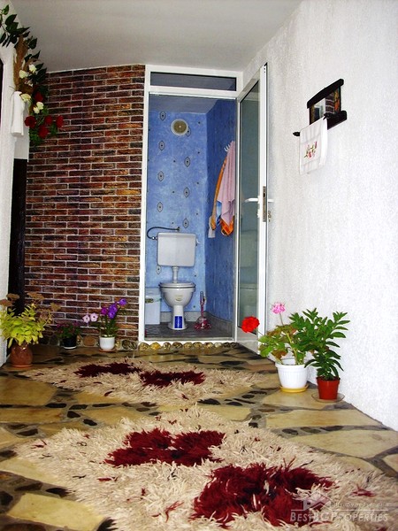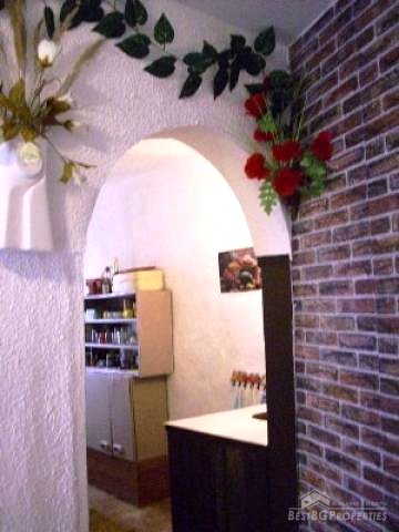 The house which is for sale is two storeys and comprises total living area of 160 sq m. The first floor comprises two premises - taverns, together with total area 80 sq m. There is also a large terrace. The second floor includes a corridor, bathroom with WC, 1 bedroom, kitchen and a living room. The house is renovated and ready to move in. It is for sale fully furnished and equipped. There are new electricity and water installations.