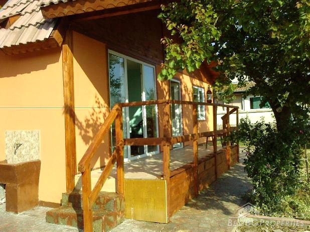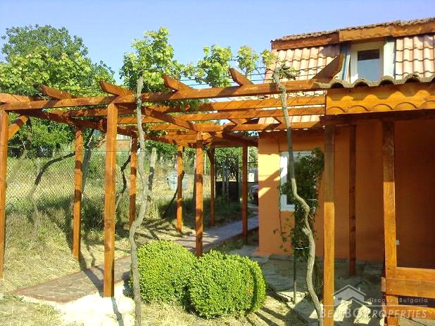 The property consists of a wonderful 2 storey house built on spacious plot. The house is newly built, it is 1 year old. It comprises total living area of 80 sq m distributed between two residential floors. The first floor consists of a living room with kitchen area, corridor, two bedrooms and a bathroom with WC. The second floor comprises one spacious premise with panoramic windows. The house is finished with best quality materials according to the highest standards of construction. Laminate and terracotta floorings, terracotta and faience in the bathroom, latex painted walls and ceilings, PVC window joinery. The house is brick built with wooden roof covered with tiles.
