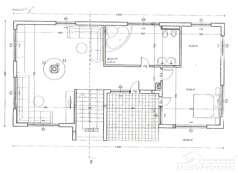The house is two stories and comprises total living area of 274 sq m. It is newly built. The house has spacious bright rooms, wonderful large balcony with outstanding views towards the mountains. There two bathrooms on the first floor and a large bathroom with Jacuzzi on the second floor. The finishing of the rooms is just amazing - laminate floorings in the bedrooms, terracotta in the lounge and corridors, terracotta and faience in the bathrooms. The walls and ceilings are painted with high quality latex paint.