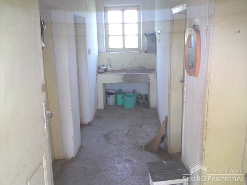 The property which is for sale consists of a house and a spacious yard. The house old and is in bad condition so some repair works are going to be necessary in order to become livable. Although the foundations and the walls are really solid. The house comprises two residential floors. The first floor consists of three rooms and the second has another three rooms and a corridor. Outer stair case connects both floors. There is also a basement under the house. The house is built on a very large plot of land - 1300 sq m. The plot is nicely arranged with much greenery, wines, fruit trees and a well.
