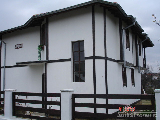 The house is newly built and comprises two residential floors. It has total living area of 180 sq m and it is built on a spacious plot of land 780 sq m in size. The house is built in the typical Strandzha style. The first floor comprises a living room with dining area and a fireplace, bathroom with WC, large veranda. The second floor includes three bedrooms, bathroom with WC and a balcony. The house is for sale completely finished without the floorings and the bathroom finishing. The window joinery is wooden, the inner walls are finished with gypsum. The yard comprises a swimming pool. It is perfectly landscaped with much greenery and different sorts of fruit trees. There is a massive fence around it