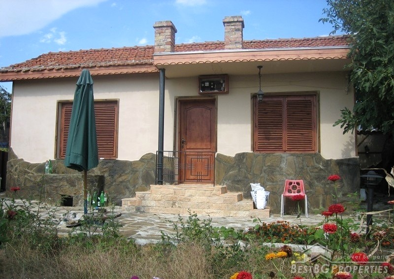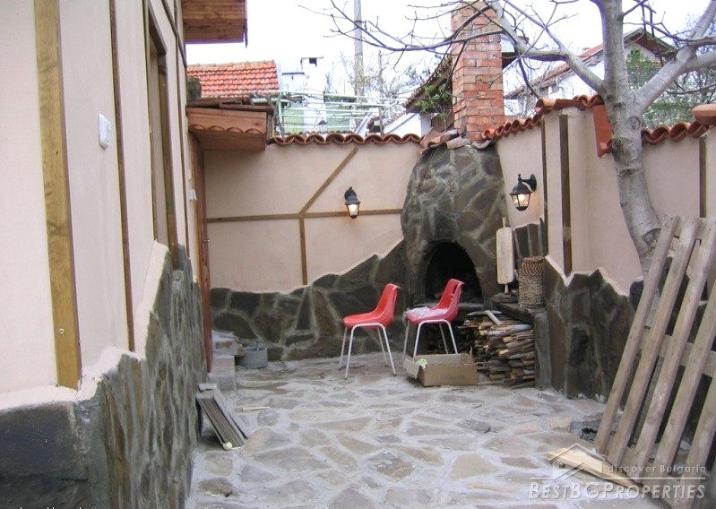 The house is one story, comprising total living area of 40 sq m. The living area is distributed between one bedroom, bathroom with WC and a living room with kitchen box. There is a possibility for constructing an additional floor above the first one. The house comes fully finished and furnished. The plot area which belongs to this property comprises total area of 360 sq m. It is surrounded from all sides by a massive brick fence and includes a barbeque area and landscaped garden. The house is finished in year 2004 and is ready to move in.
